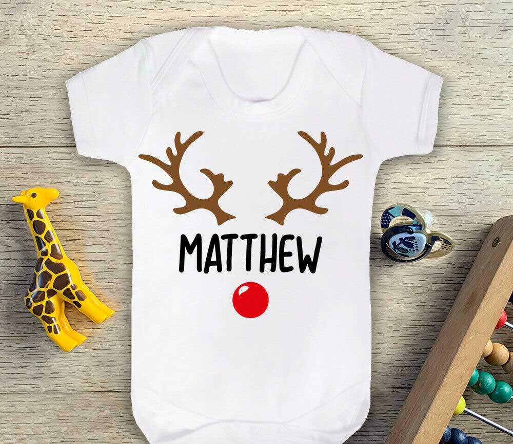 Custom Name Reindeer Babygrow
