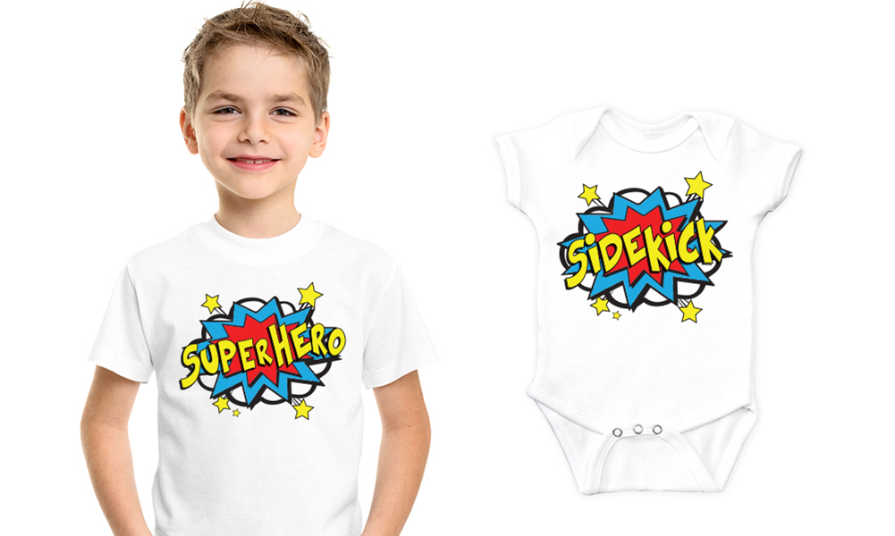 Superhero Sidekick Kids T Shirt & Baby Vest
